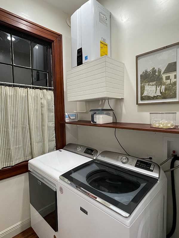 Washing Machine and Dryer for your convenience. Laundry pods, fabric softener sheets, stain remover, and oxiclean powder also provided.